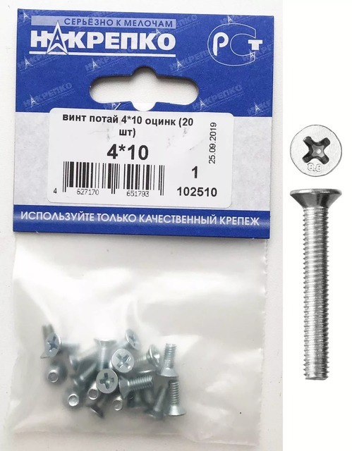 Винт потай 4*10 оцинк "НАКРЕПКО" (20 шт) 102510 /5/25/
