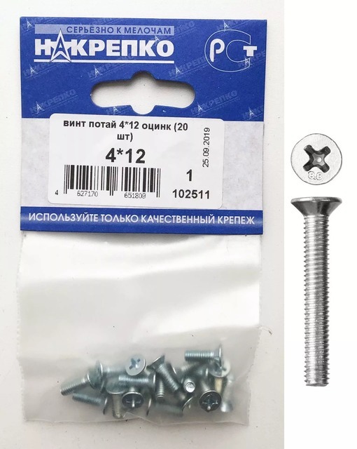 Винт потай 4*12 оцинк "НАКРЕПКО" (20 шт) 102511 /5/25/