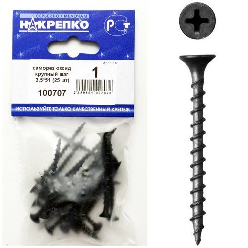 Саморез оксид крупный шаг 3,5*51 "НАКРЕПКО" (25 шт) 100707 /1/25/