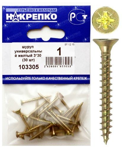 Шуруп универсальный желтый 3*30 "НАКРЕПКО" (30 шт) 103305 /1/25/100/