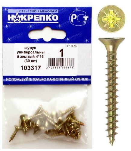 Шуруп универсальный желтый 4*16 "НАКРЕПКО" (30 шт) 103317 /1/5/25/