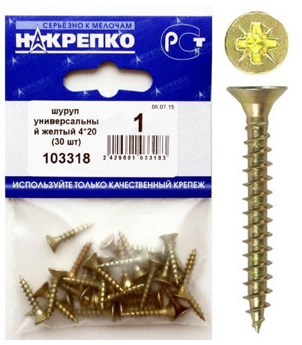 Шуруп универсальный желтый 4*20 "НАКРЕПКО" (30 шт) 103318 /1/25/100/