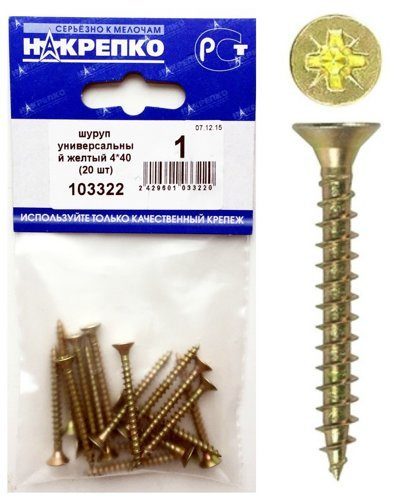 Шуруп универсальный желтый 4*40 "НАКРЕПКО" (20 шт) 103322 /1/5/25/
