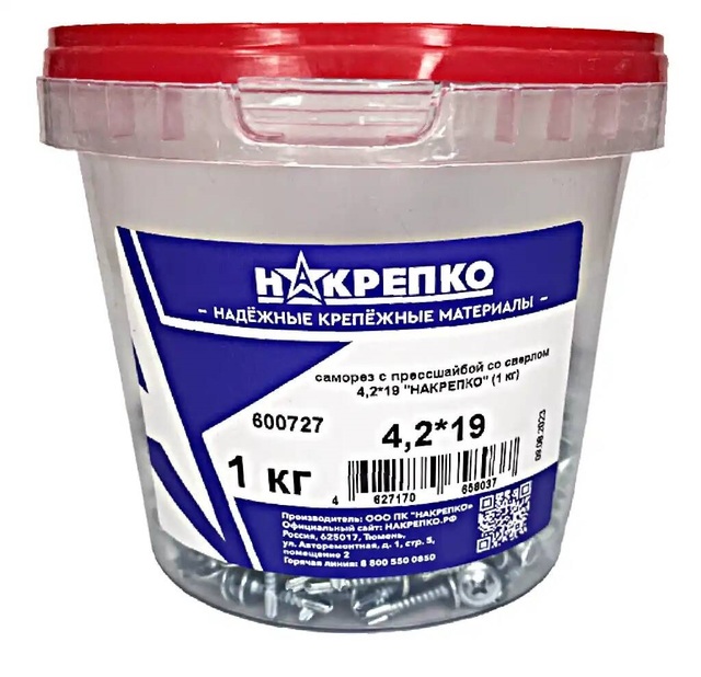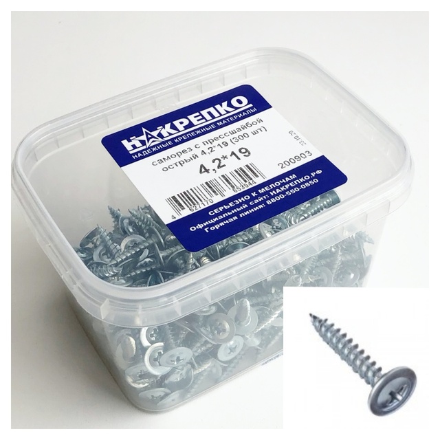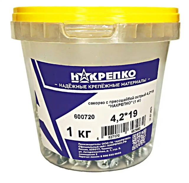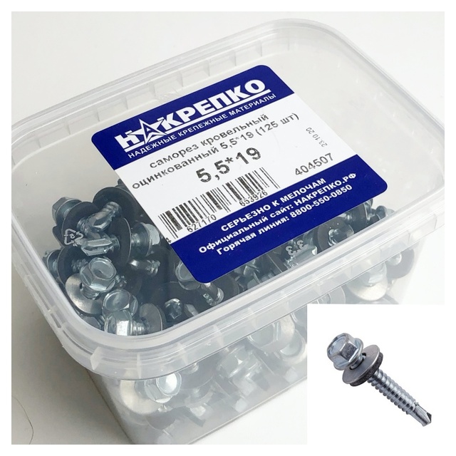 Саморез кровельный оцинкованный 5,5*19 "НАКРЕПКО" (125 шт) 404507 /1/6/