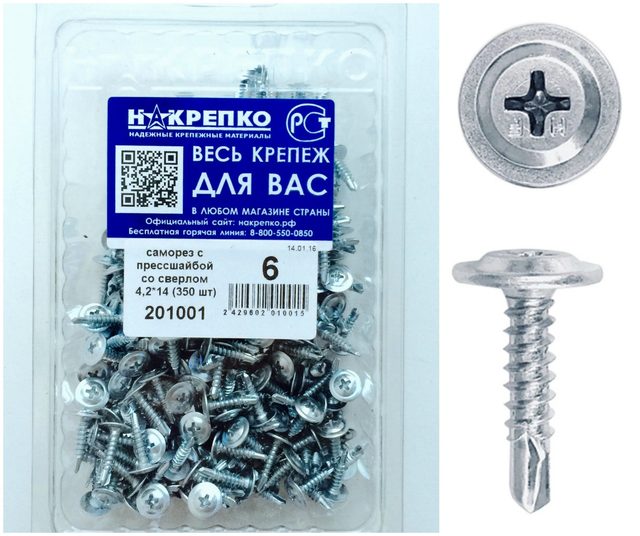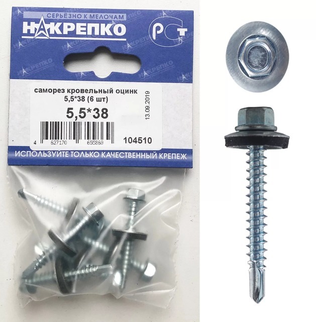 Саморез кровельный оцинк 5,5*38 "НАКРЕПКО" (6 шт) 104510 /5/25/
