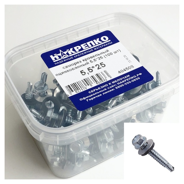 Саморез кровельный оцинкованный 5,5*25 "НАКРЕПКО" (100 шт) 404508 /1/6/
