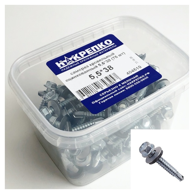Саморез кровельный оцинкованный 5,5*38 "НАКРЕПКО" (75 шт) 404510 /1/6/