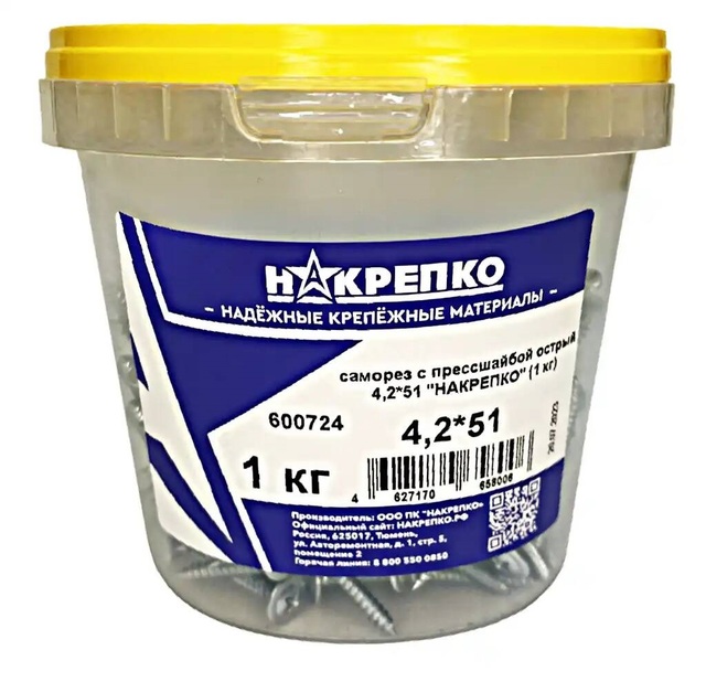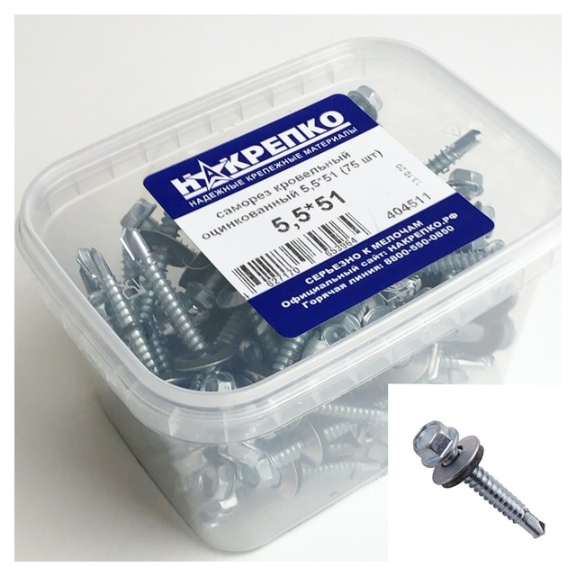 Саморез кровельный оцинкованный 5,5*51 "НАКРЕПКО" (75 шт) 404511 /1/6/