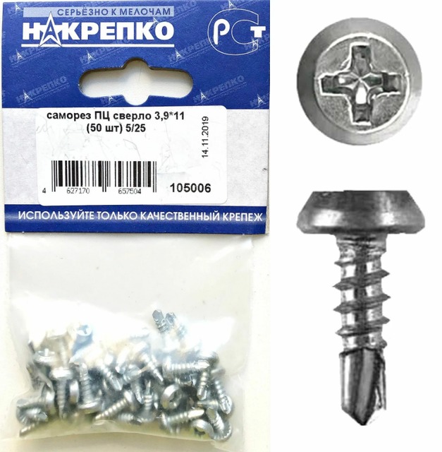 Саморез кровельный оцинк 5,5*19 "НАКРЕПКО" (10 шт) 104507 /5/25/