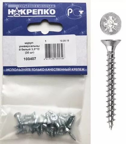 Шуруп универсальный белый 3,5*12 "НАКРЕПКО" (30 шт) 103407 /1/5/25/