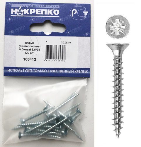 Шуруп универсальный белый 3,5*35 "НАКРЕПКО" (20 шт) 103412 /1/5/25/
