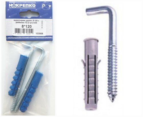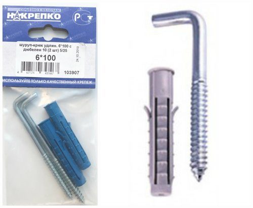 Шуруп-крюк 6*60 с дюбелем 10 "НАКРЕПКО" (2 шт) /1/5/25/ 103821