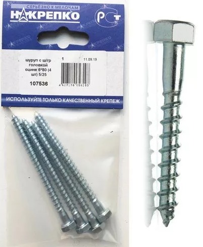 Шуруп "глухарь" с ш/гр головкой оцинк 6*80 "НАКРЕПКО" (4 шт) 107536 /1/5/25/