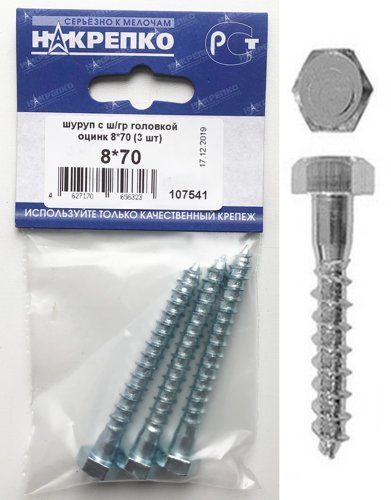 Шуруп "глухарь" с ш/гр головкой оцинк 8*70 "НАКРЕПКО" (3 шт) 107541 /1/5/25/