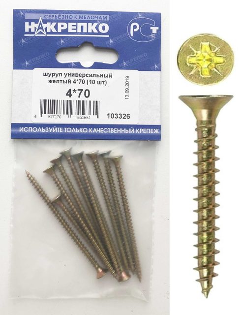 Шуруп универсальный желтый 4*70 "НАКРЕПКО" (10 шт) 103326 /1/5/25/