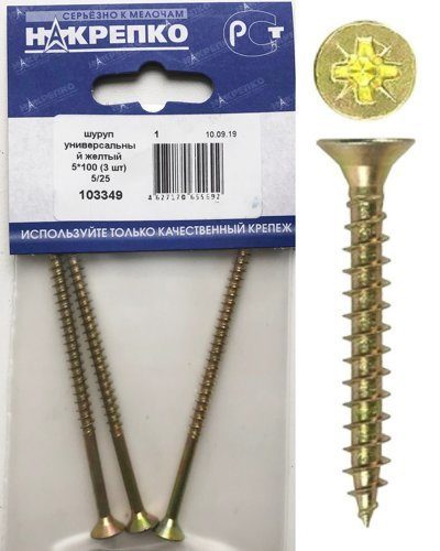 Шуруп универсальный желтый 5*100 "НАКРЕПКО" (3 шт) 103349 /1/5/25/
