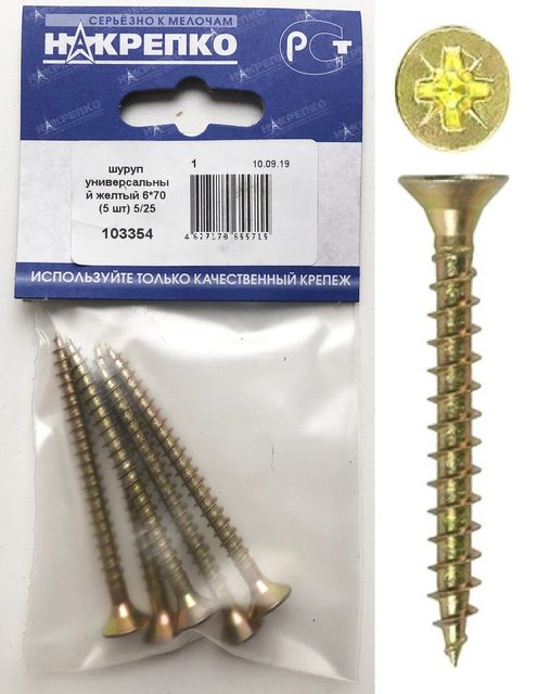 Шуруп универсальный желтый 6*70 "НАКРЕПКО" (5 шт) 103354 /1/5/25/