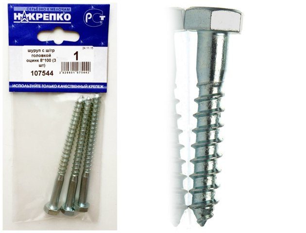 Шуруп "глухарь" с ш/гр головкой оцинк 8*100 "НАКРЕПКО" (3 шт) 107544 /1/5/25/