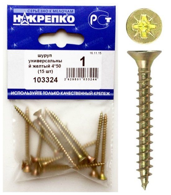 Шуруп универсальный желтый 4*50 "НАКРЕПКО" (15 шт) 103324 /1/5/25/