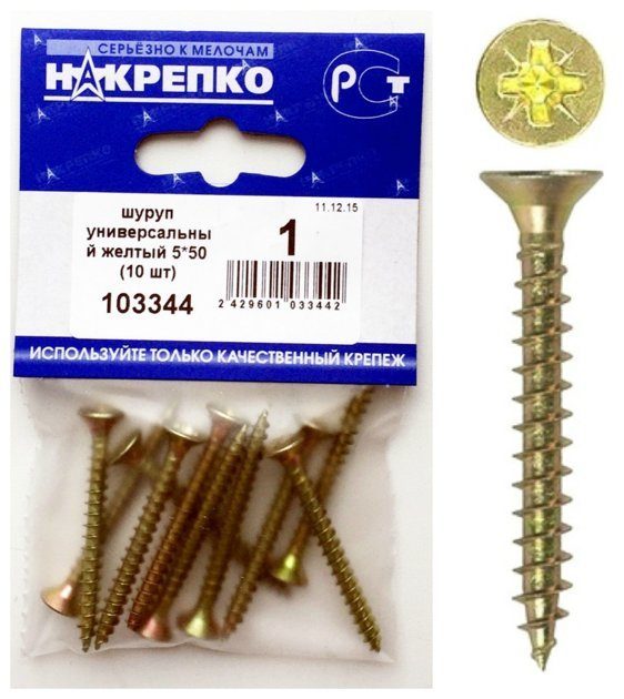 Шуруп универсальный желтый 5*50 "НАКРЕПКО" (10 шт) 103344 /1/5/25/