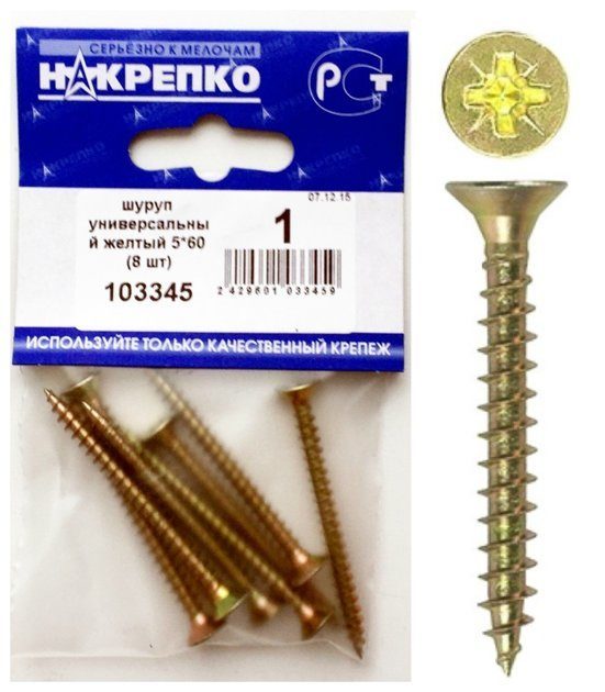 Шуруп универсальный желтый 5*60 "НАКРЕПКО" (8 шт) 103345 /1/5/25/