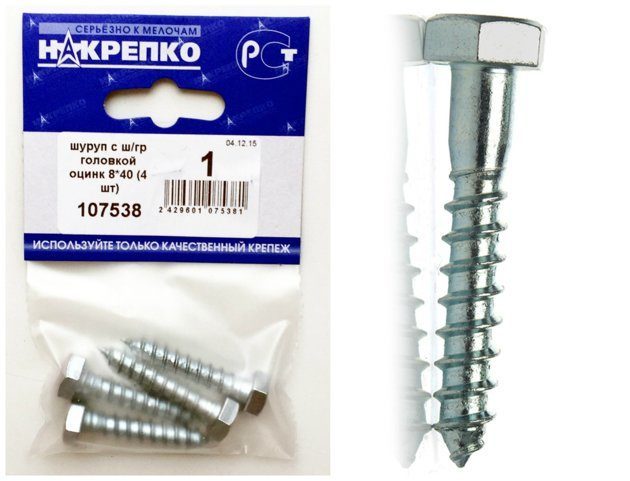 Шуруп "глухарь" с ш/гр головкой оцинк 8*40 "НАКРЕПКО" (4 шт) 107538 /1/5/25/