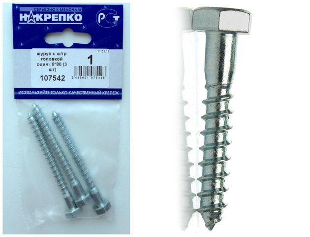 Шуруп "глухарь" с ш/гр головкой оцинк 8*80 "НАКРЕПКО" (3 шт) 107542 /1/5/25/