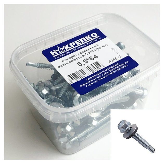 Саморез кровельный оцинкованный 5,5*64 "НАКРЕПКО" (50 шт) 404512 /1/6/
