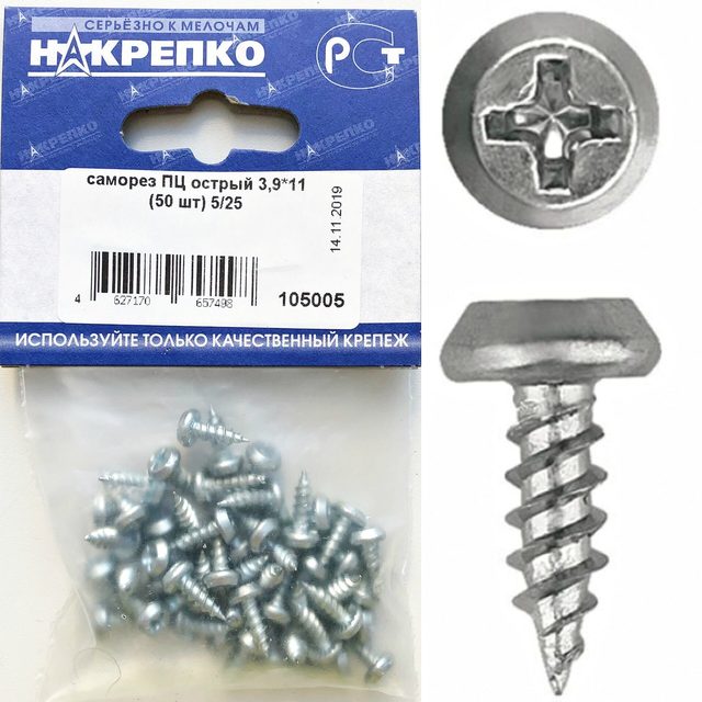 Саморез оксид крупный шаг 3,5*19 "НАКРЕПКО" (50 шт) 100701 /1/25/