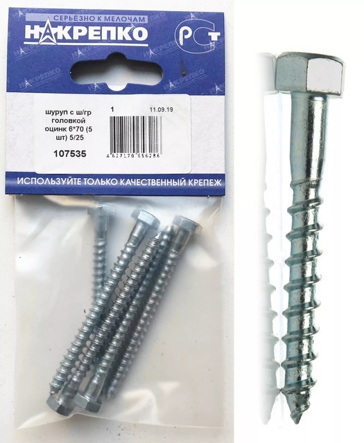 Шуруп "глухарь" с ш/гр головкой оцинк 6*70 "НАКРЕПКО" (5 шт) 107535 /1/5/25/