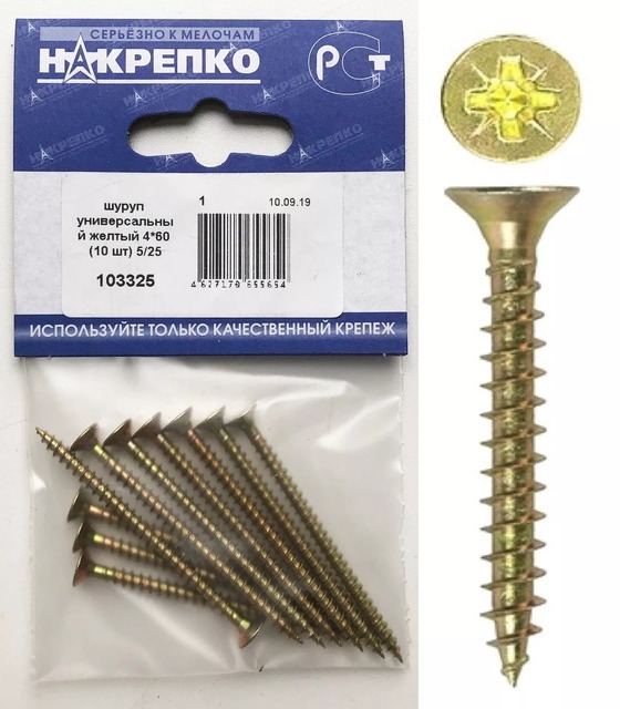 Шуруп универсальный желтый 4*60 "НАКРЕПКО" (10 шт) 103325 /1/5/25/