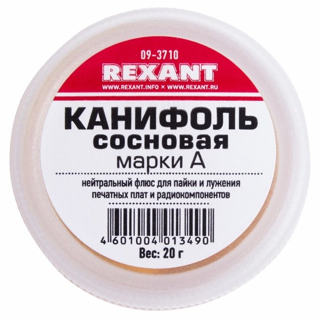 Канифоль сосновая марки А 20гр REXANT /1/10/120/ 09-3710