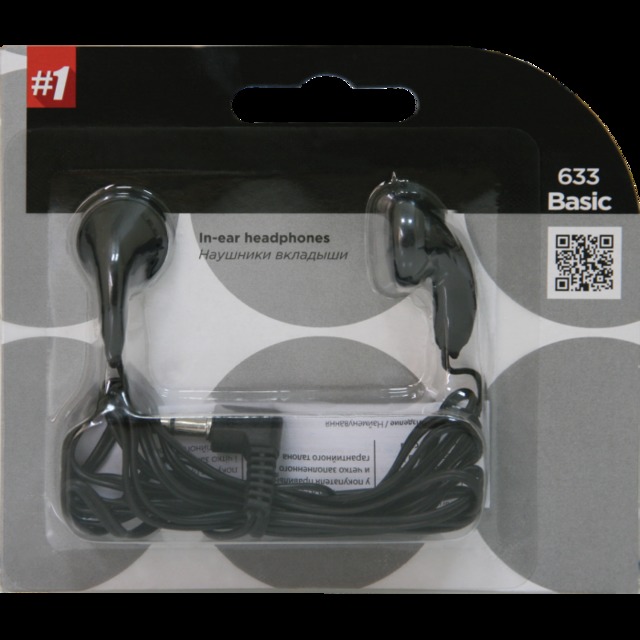 Наушники вкладыши DEFENDER Basic 633, чёрные, длина провода: 1.1м. /1/200/