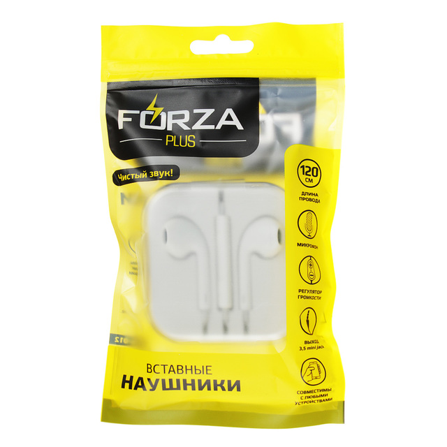 Наушники вкладыши с гарнитурой, белые, пластиковый бокс FORZA /1/10/20/ 916-012