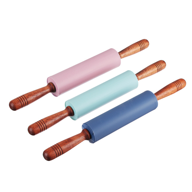 Скалка силиконовая 44*5см, крутящиеся дер ручки,17710/ 1/72/