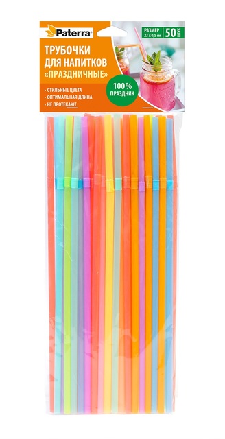 59074 | Трубочки для коктейлей "ПРАЗДНИЧНЫЕ", разноцветные, с изгибом, 23*0,5см, 50шт. в упаковке , PATERRA /1/48/ 401-268 | 103,44 | |||||