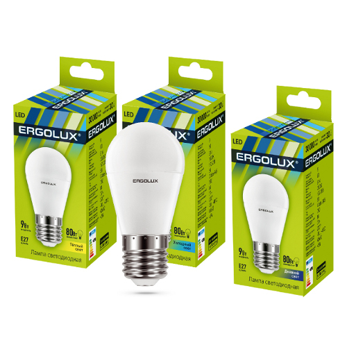 Ergolux LED-G45-9W-E27-4K Шар 9Вт E27 4500K 172-265В /1/10/100/ 13177