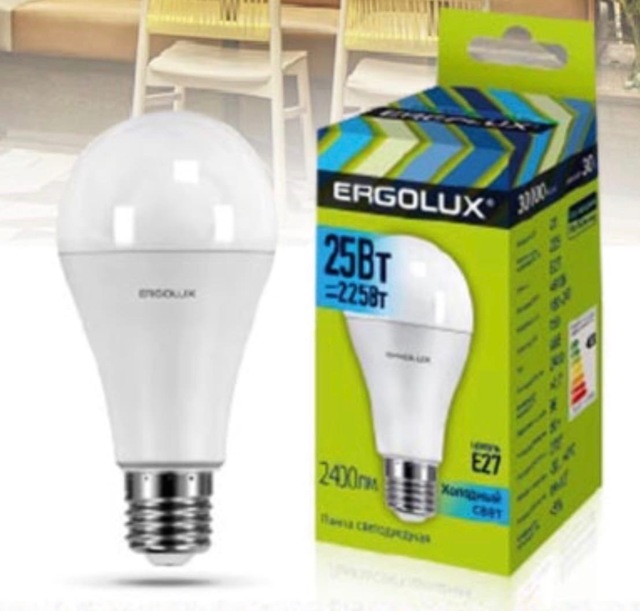 Ergolux LED-A65-25W-E27-4K ЛОН 25Вт E27 4500K 180-240В /1/10/100/ 14236