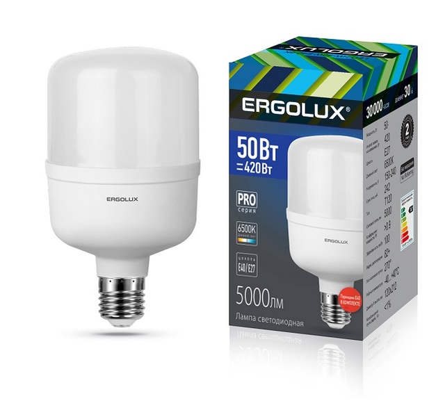 Ergolux LED-HW-50W-E40-6K серия PRO 50Вт E27/E40 6500К 150-260В /1/5/20/ 14329