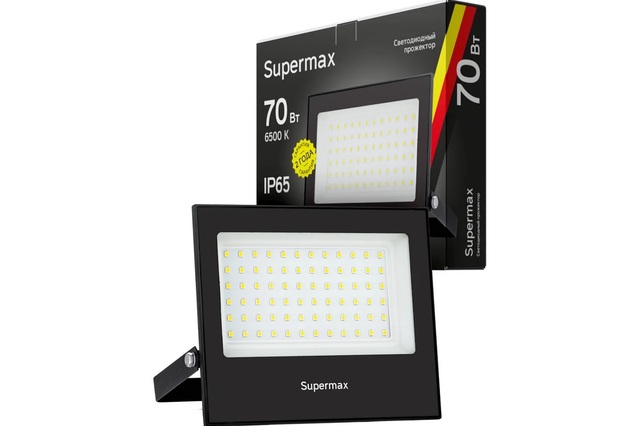 SUPERMAX прожектор светодиодный 70Вт, 7000 Лм, IP65, 6500К /1/20/