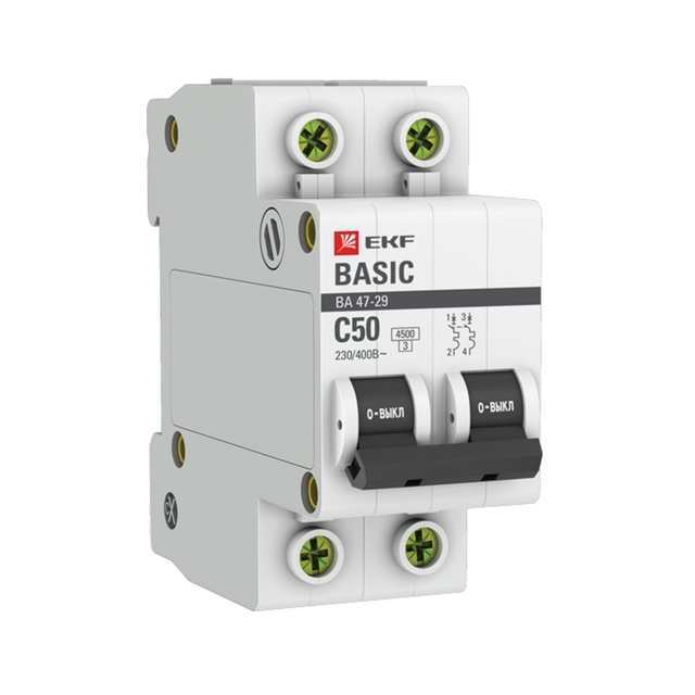 63590 | Выключатель автоматический ВА 47-29 2P 50А (C) 4,5кА EKF Basic /1/6/60/ | 397,55 | |||||