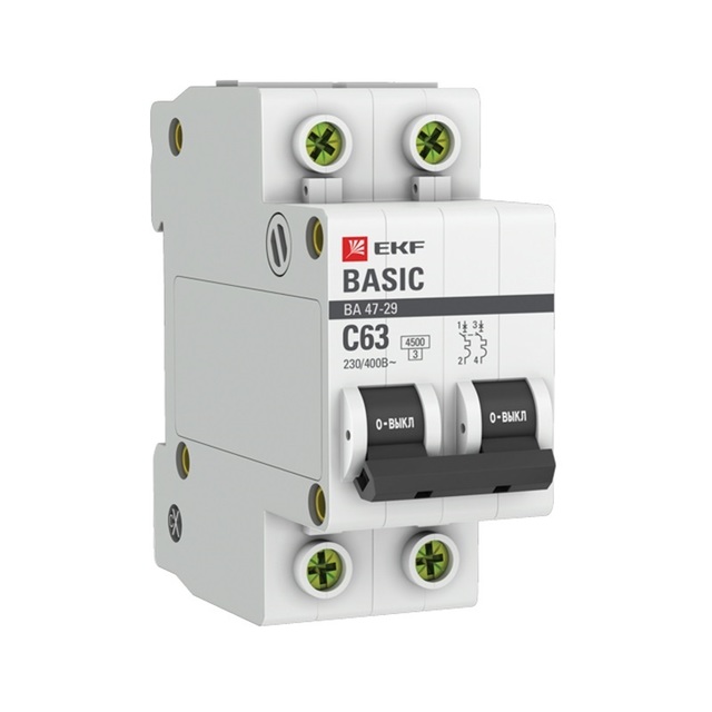 63591 | Выключатель автоматический ВА 47-29 2P 63А (C) 4,5кА EKF Basic /1/6/60/ | 406,42 | |||||