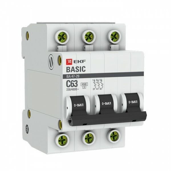 63611 | Выключатель автоматический ВА 47-29 3P 63А (C) 4,5кА EKF Basic /1/4/40/ | 626,31 | |||||