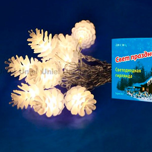 ULD-S0280-020/DTA WARM WHITE IP20 PINE CONES Гирлянда светодиодная «Шишки» , 20 светодиодов, 2,8 м,