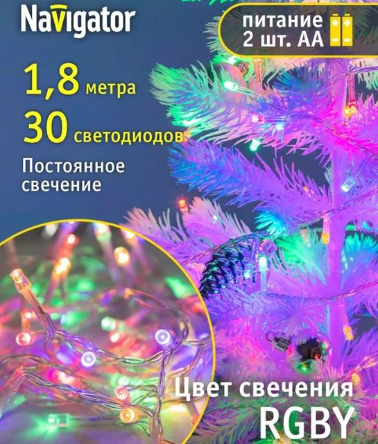 Гирлянда 61788 NGF-S01-30RGBY-5-1.8m-2AA-TR-IP20 Navigator /1/