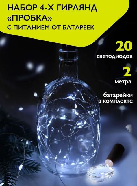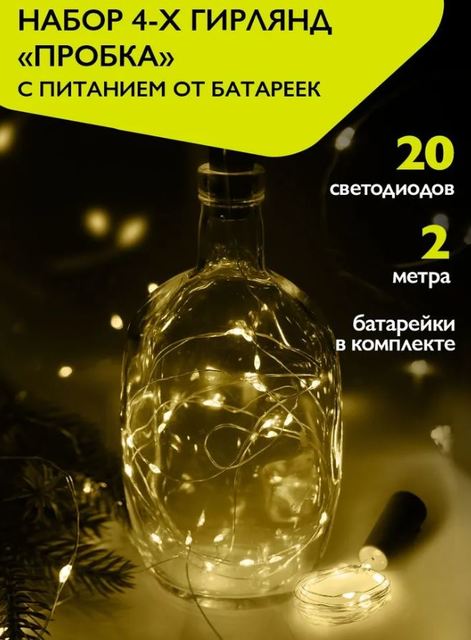 Гирлянды DC-G04-20WS4, комплект 4 шт., Пробки, бел., 20 LED, 3xAG13, ФАZA /1/60/
