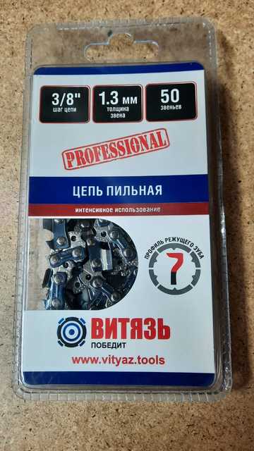 Цепь пильная, 50 звеньев, 3/8'', 1,3 мм, прямой профиль зуба, ЦПЗ 3/8-050-50 ПРО Витязь /1/50/