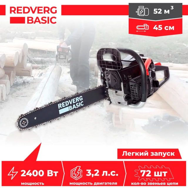 Бензопила цепная 2,3 л.с, 45 см3. шина 18", цепь 0,325"/72 звена, GC-45C, RedVerg Basic /1