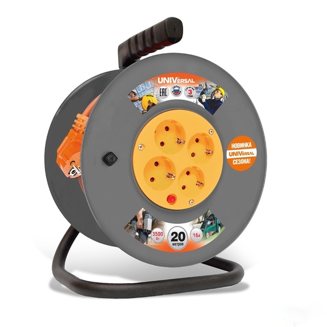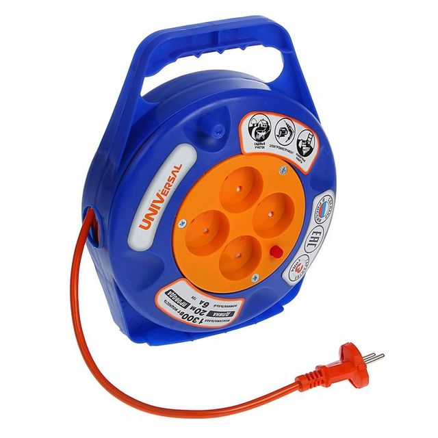 УНИВЕРСАЛ У6-015 ПВС 2*0.75 (термо) 4гн 20м катушка, закрытый корпус, защ.шт. /max.1300Вт, 6А/ 3902