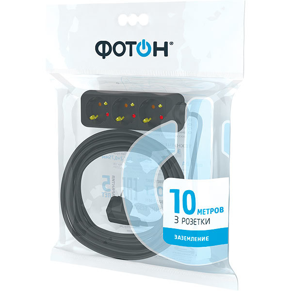 Удлинитель сетевой "ФОТОН" 16-103Е (1х3) Для дома 10м, с/з, 16А, черный /1/10/